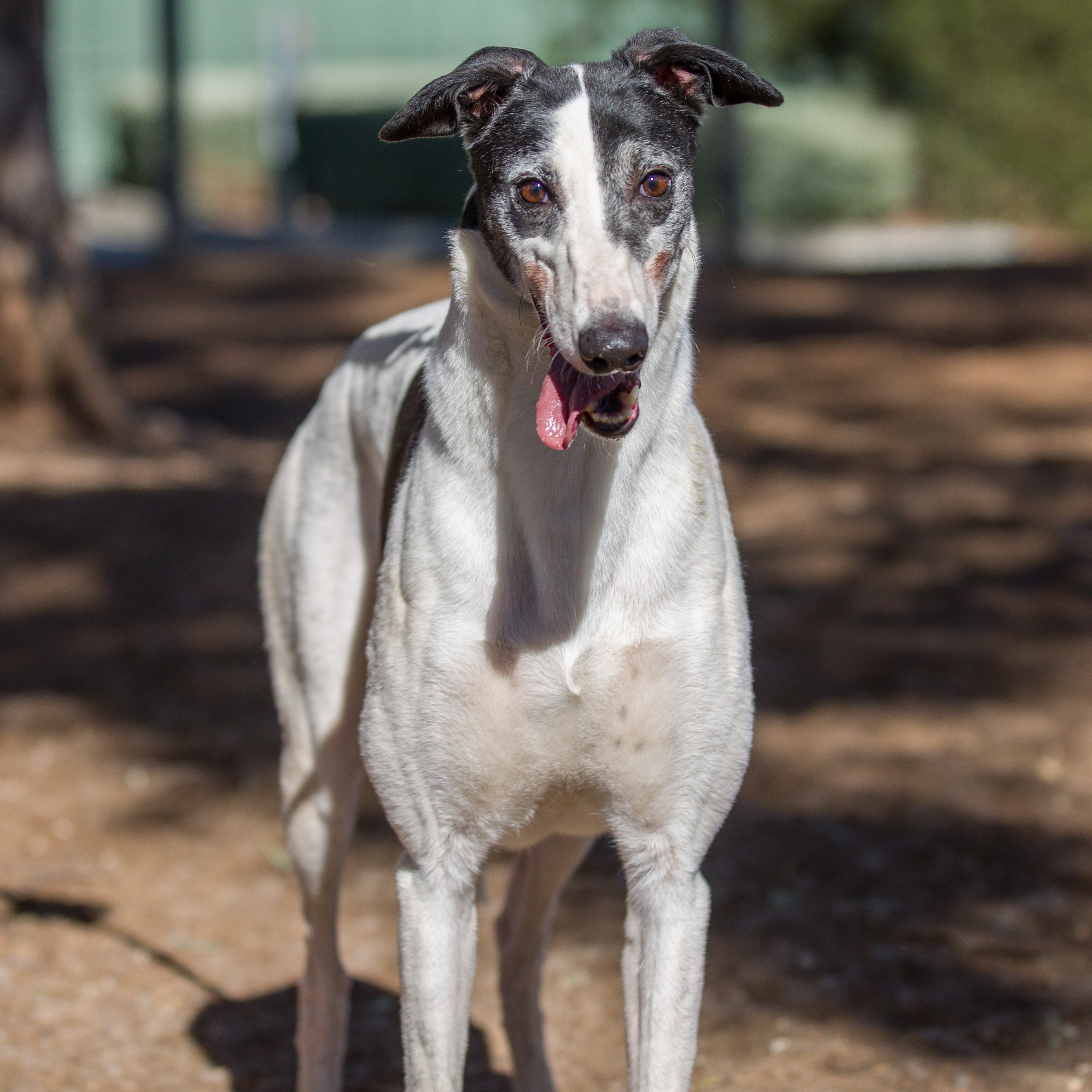 This is King, an outgoing greyhound with a quirky personality. This affectionate boy's enthusiastic about life, always up for an adventure, and not afraid to show his enthusiastic side. King's a great fit for an active household where he can get plenty of attention and exercise. King may suit households with kids 10+ or adults who can keep up with his playful energy – no small dogs, cats, or old/frail people please! A backyard to stretch his legs and a robust dog companion (medium to large) may be best suitedif he's not the only dog. If you're looking for a fun-loving, loyal companion who's always up for a laugh, King's your guy!