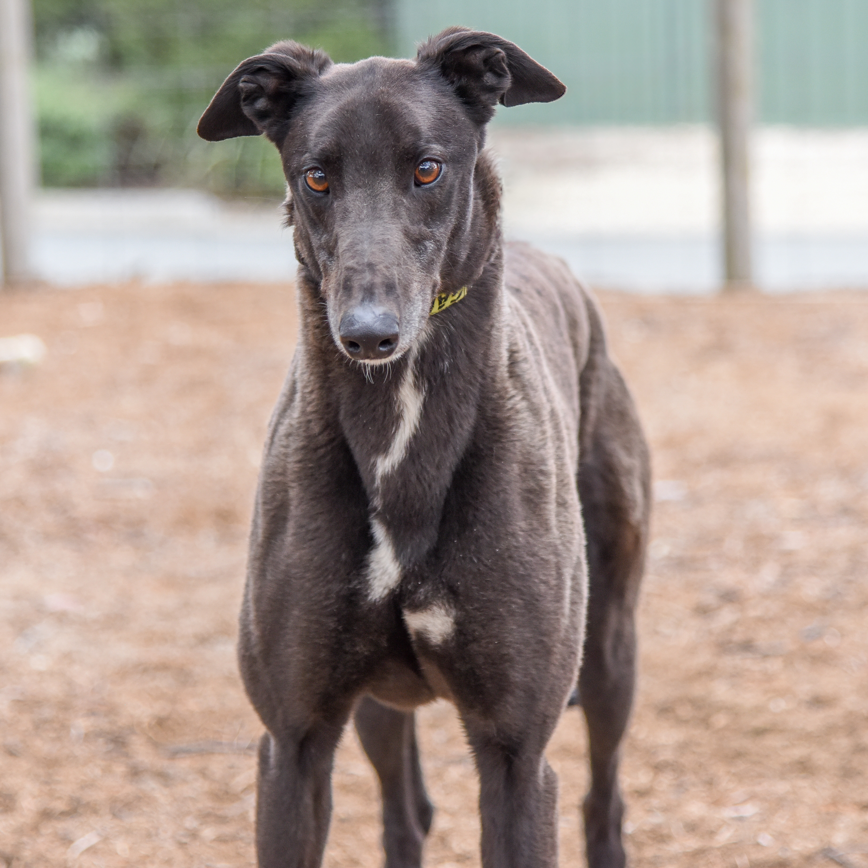 Can you hear an Echo? Its saying “Hey you! I’m ready to be adopted, adopted, adopted…..”. Ok enough with the cheesy jokes. But seriously, this girl is a super sweet, personable, quiet, polite and a little sprinkle of puppy. She can be a little shy in new environments, but she soon relaxes and shows her charm. We think she may suit living in a home with children 10 and over and possibly with a play buddy of any size as long as they are willing to play with a greyhound. We also think she may suit living with full timeworkers.
